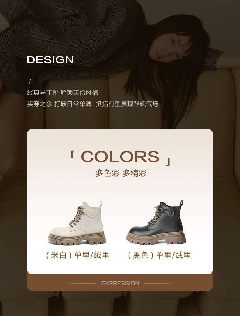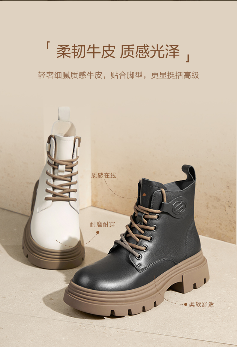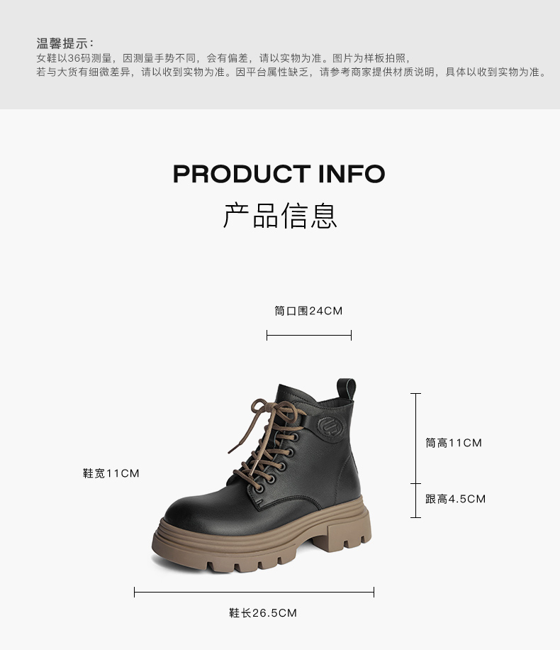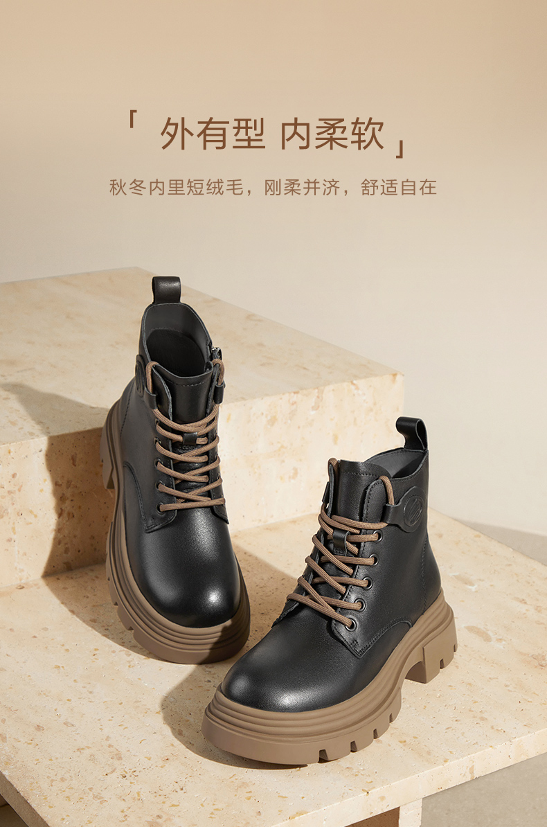 | 鞋类流行款式:马丁靴 | 鞋头款式:圆头 | 执行标准:舒适上班鞋Q/LR001-2023若与实物产生差异,请以实物标签为准 | 跟高范围:中跟鞋(3-5CM) | 鞋面图案:纯色 |