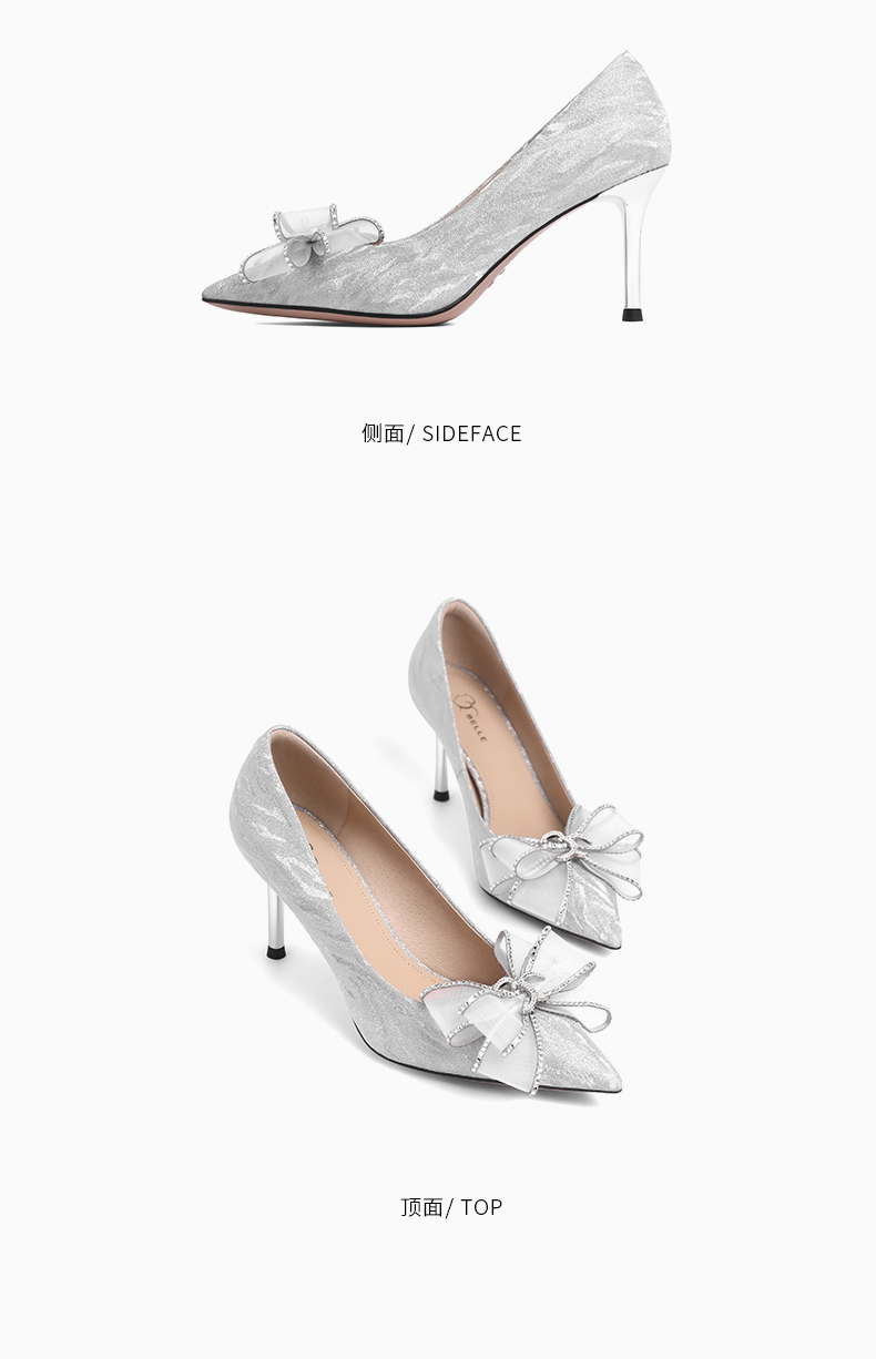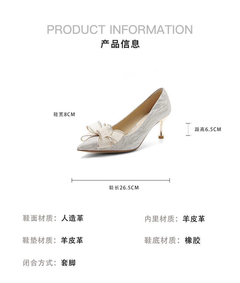 | 鞋头款式:尖头 | 鞋底材质:橡胶底 | 鞋面图案:纯色 | 内增高:无 | 鞋跟形状:细跟 |