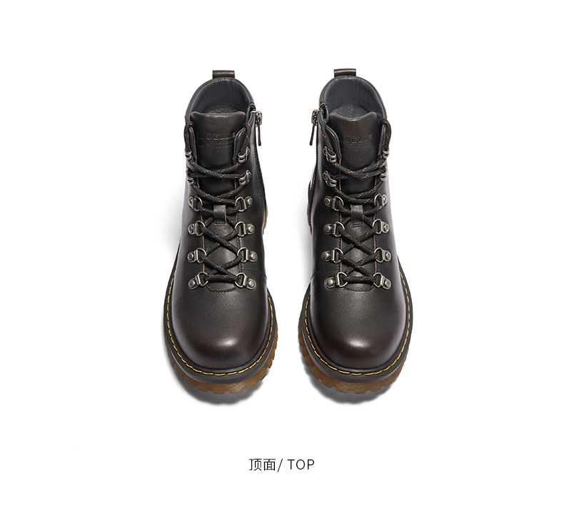 | 鞋底材质:PVC | 靴筒内里材质:织物人造革 | 内增高:无 | 鞋面材质:牛皮革 | 闭合方式:系带 |