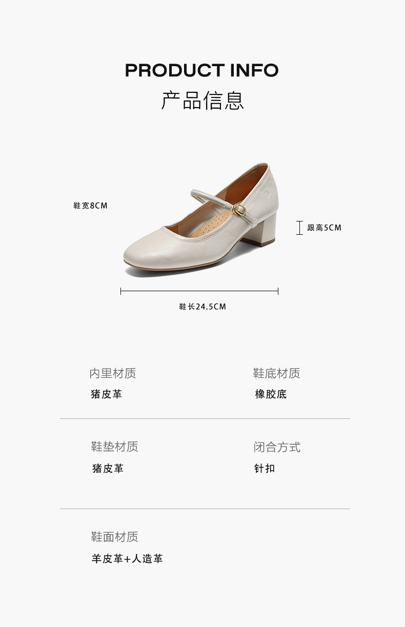 | 上市时间:2025年秋季 | 鞋类流行款式:玛丽珍鞋 | 鞋头款式:方头 | 鞋面图案:纯色 | 鞋跟形状:粗跟 |