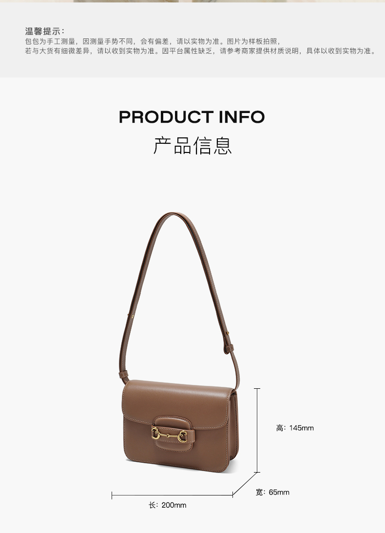 | 包的规格:W200*H145*65mm | 内部结构:拉链暗袋/卡位夹层 | 背带方式:单肩/斜挎 | 风格:OL通勤 | 色系:咖啡色 |