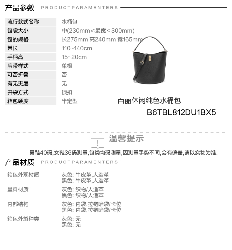 | 适用场景:通勤 | 开袋方式:锁扣 | 性别:女 | 手柄高:15~20cm | 里料材质:织物/人造革 |