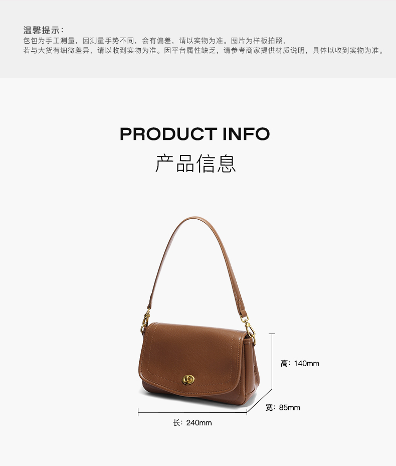 | 适用场景:通勤 | 开袋方式:锁扣 | 性别:女 | 手柄高:无 | 里料材质:织物 |