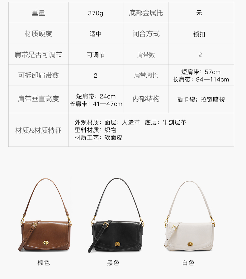| 适用场景:通勤 | 开袋方式:锁扣 | 性别:女 | 手柄高:无 | 里料材质:织物 |