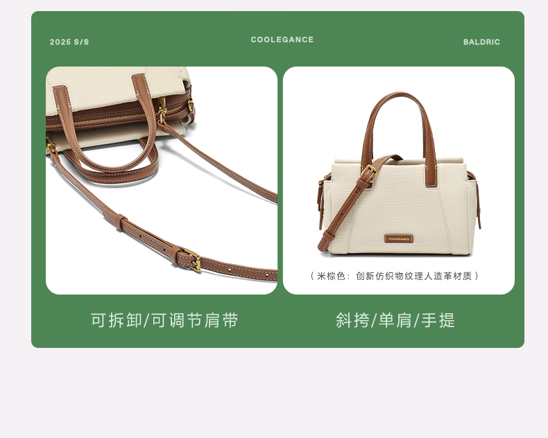 | 手柄:有 | 可否折叠:否 | 闭合方式:拉链 | 是否防水:否 | 上市时间:2025年夏季 |