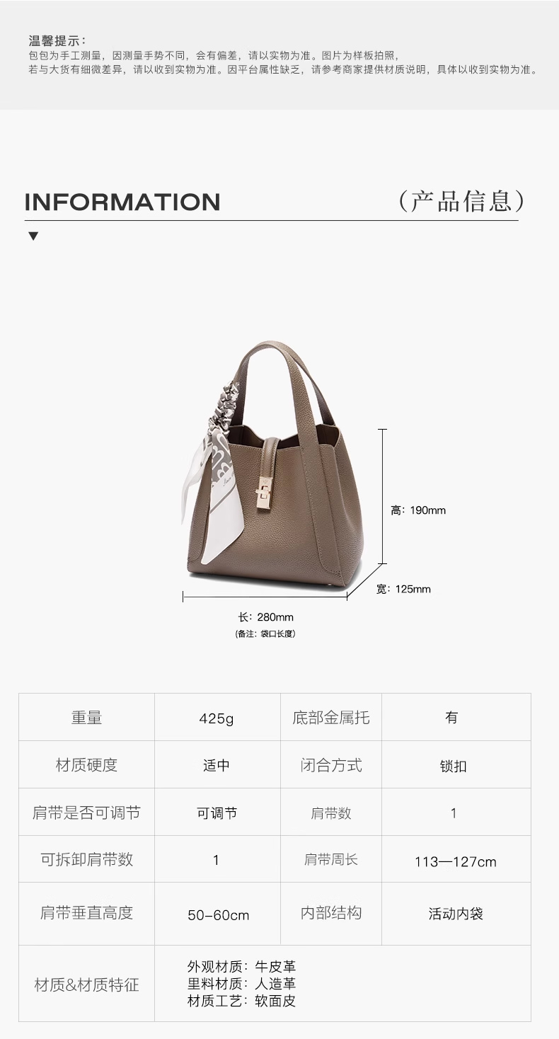 | 包的规格:W280*H190*D125mm | 内部结构:内袋拉链暗袋/卡位 | 背带方式:单肩/斜挎 | 风格:OL通勤 | 适用场景:通勤 |