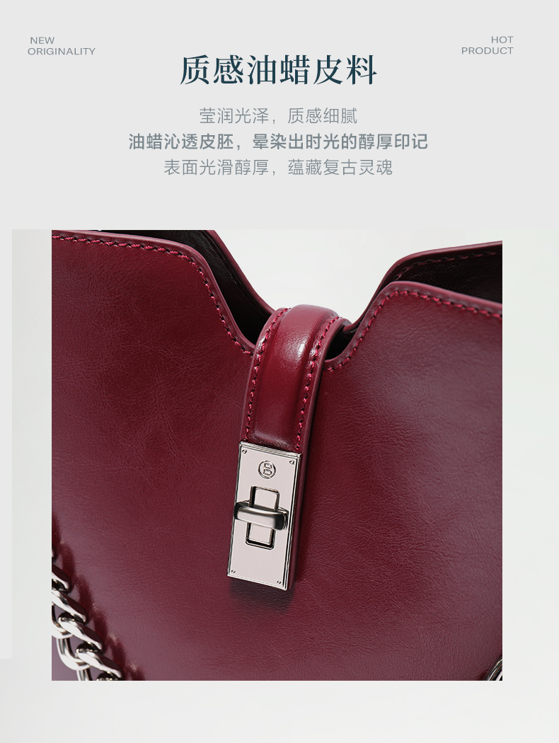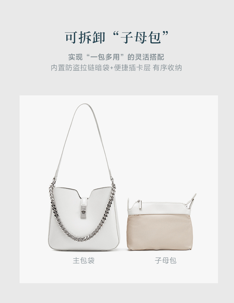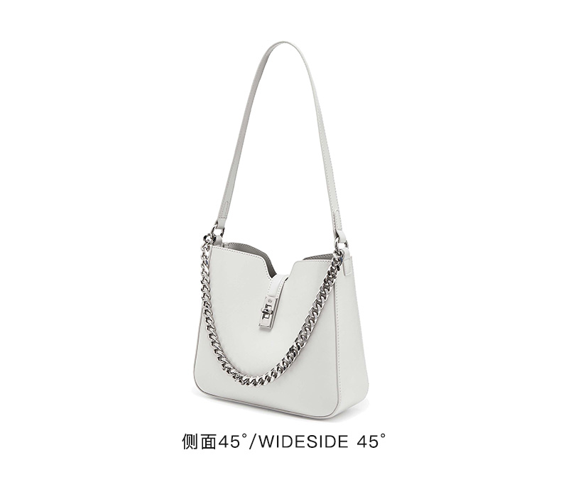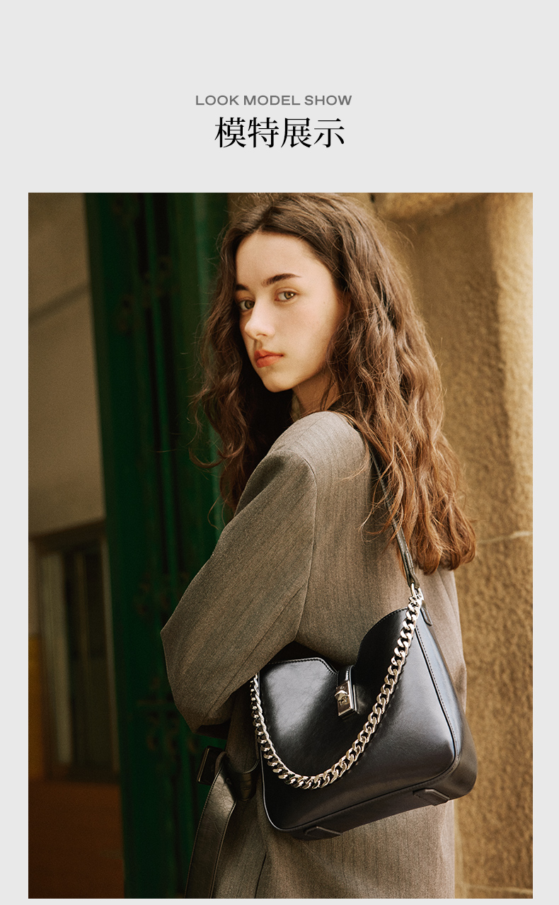 | 包的规格:W240*H220*D80mm | 闭合方式:磁扣 | 背带方式:单肩/斜挎 | 内部结构:内袋 | 风格:OL通勤 |
