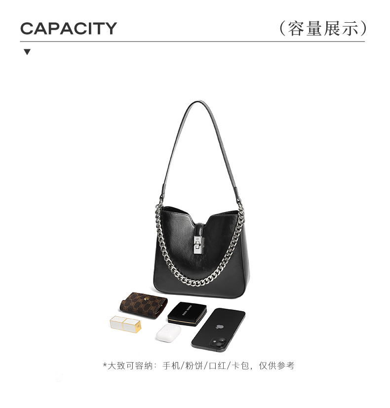 | 包的规格:W240*H220*D80mm | 闭合方式:磁扣 | 背带方式:单肩/斜挎 | 内部结构:内袋 | 风格:OL通勤 |