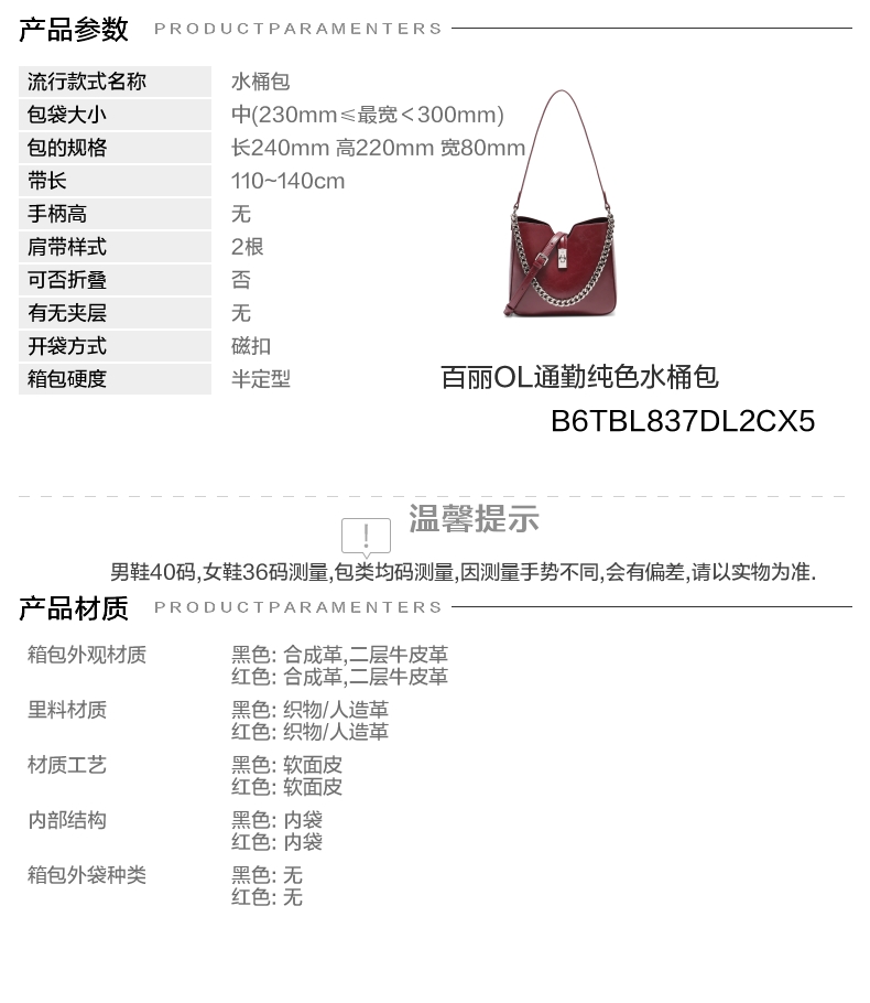 | 色系:红色 | 适用场景:通勤 | 开袋方式:磁扣 | 性别:女子 | 是否防水:否 |