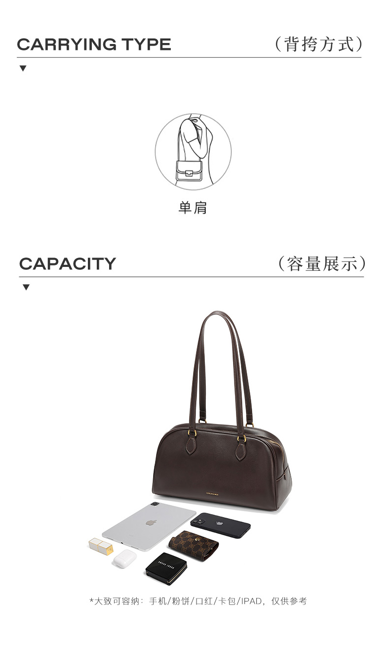 | 内部结构:拉链暗袋/卡位 | 背带方式:单肩 | 风格:OL通勤 | 色系:咖啡色 | 适用场景:通勤 |