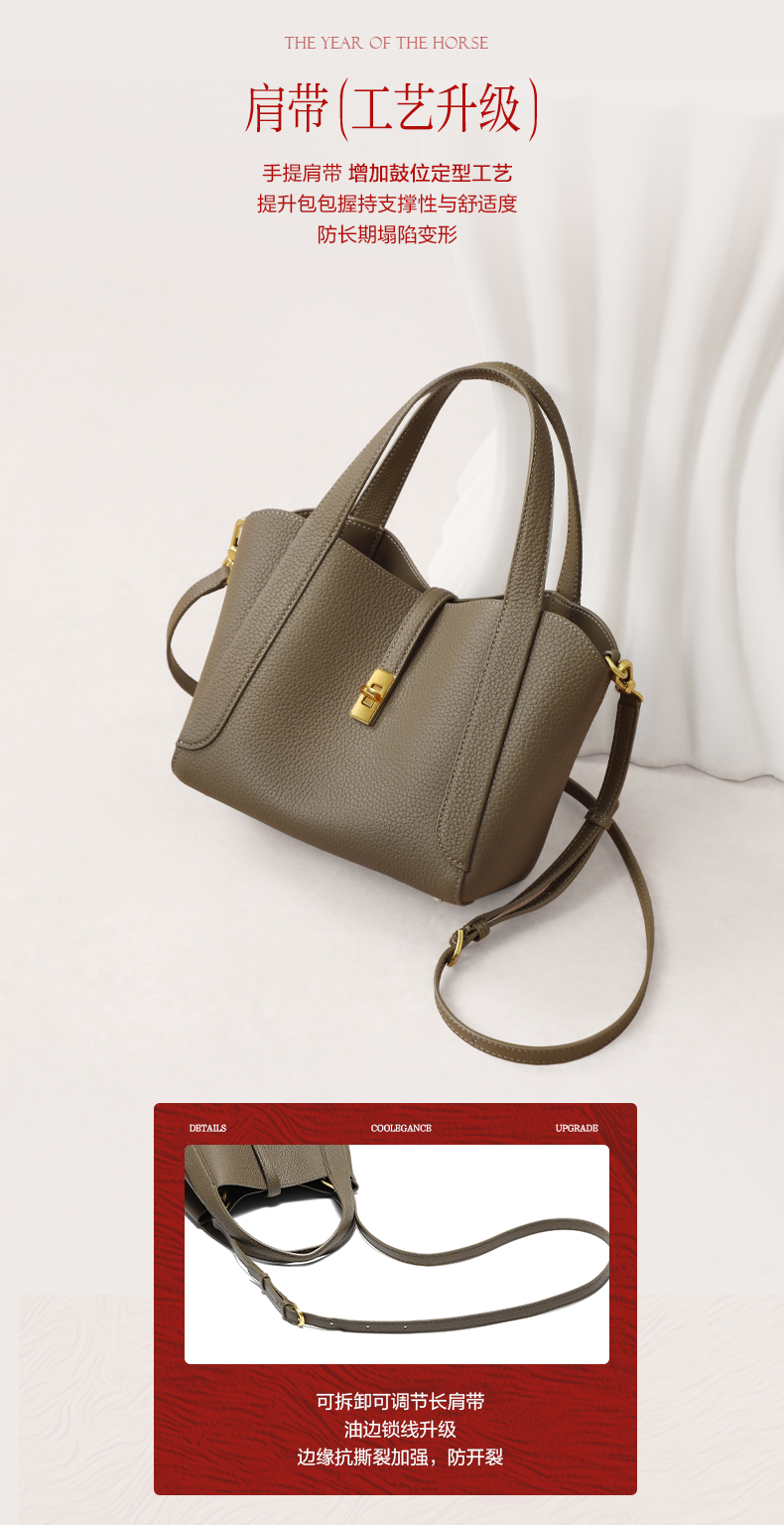 | 开袋方式:锁扣 | 性别:女子 | 是否防水:否 | 里料材质:人造革 | 手柄高:10~15cm |