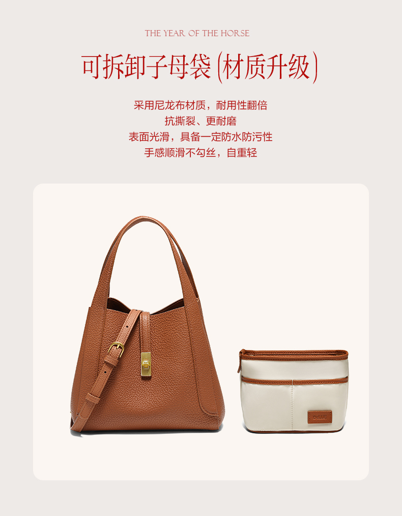 | 内部结构:内袋 | 背带方式:单肩/斜挎 | 风格:OL通勤 | 色系:棕色 | 适用场景:通勤 |