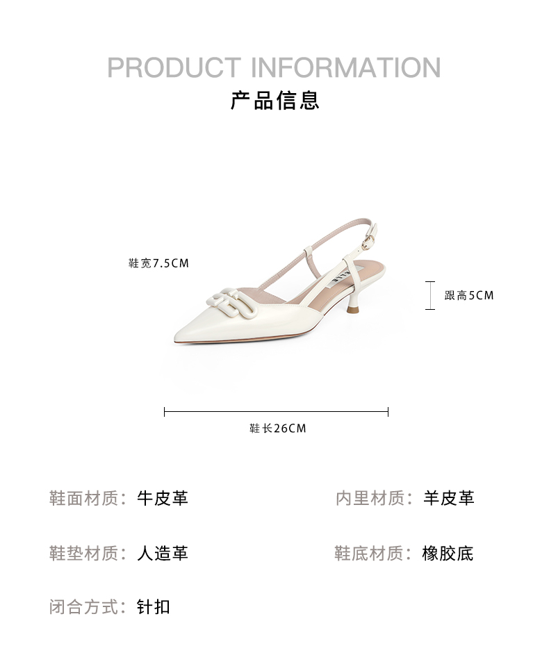 | 鞋头款式:尖头 | 鞋底材质:橡胶底 | 鞋面图案:纯色 | 鞋跟形状:细跟 | 鞋面材质:牛皮革 |