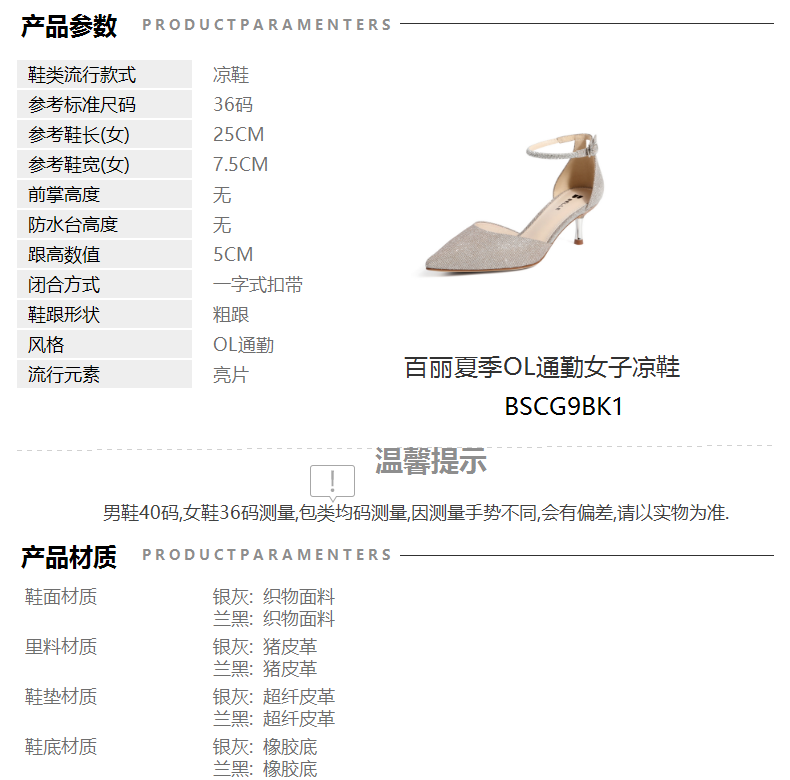 | 流行元素:亮片 | 参考鞋长(女):25CM | 参考鞋宽(女):7.5CM | 闭合方式:一字式扣带 | 风格:OL通勤 |
