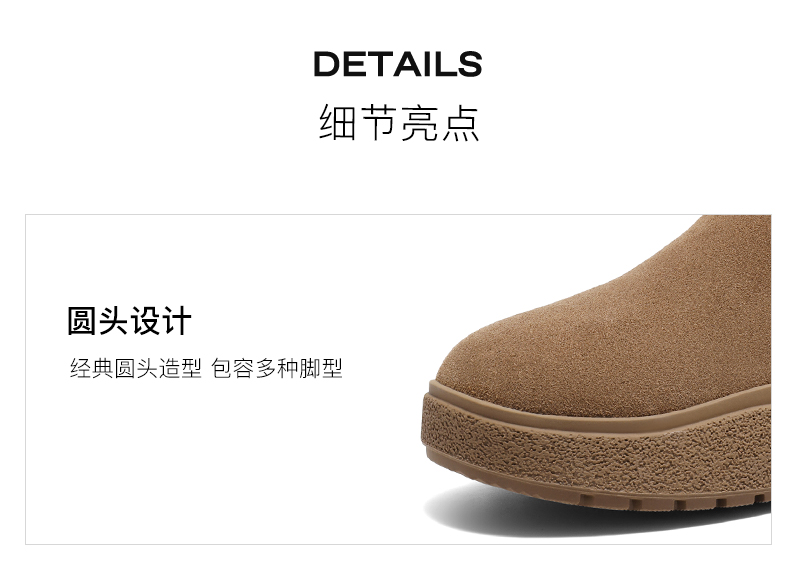 | 鞋类流行款式:雪地靴 | 鞋头款式:圆头 | 执行标准:舒适上班鞋Q/LR001-2023若与实物产生差异,请以实物标签为准 | 跟高范围:中跟鞋(3-5CM) | 鞋面图案:纯色 |