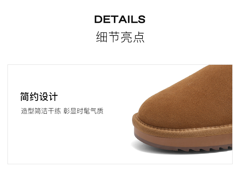 | 功能科技:耐磨 | 鞋底材质:EVA | 靴筒内里材质:针织羊毛 | 内增高:无 | 鞋面材质:牛剖层皮革 |