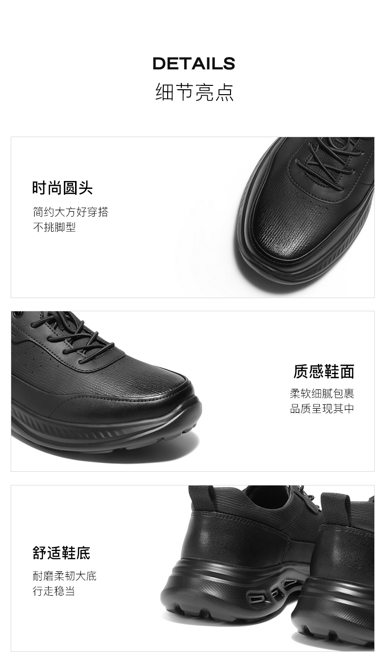 | 风格:休闲 | 色系:黑色 | 跟高数值:4CM | 40码鞋宽参考(男):10.5CM | 性别:男子 |