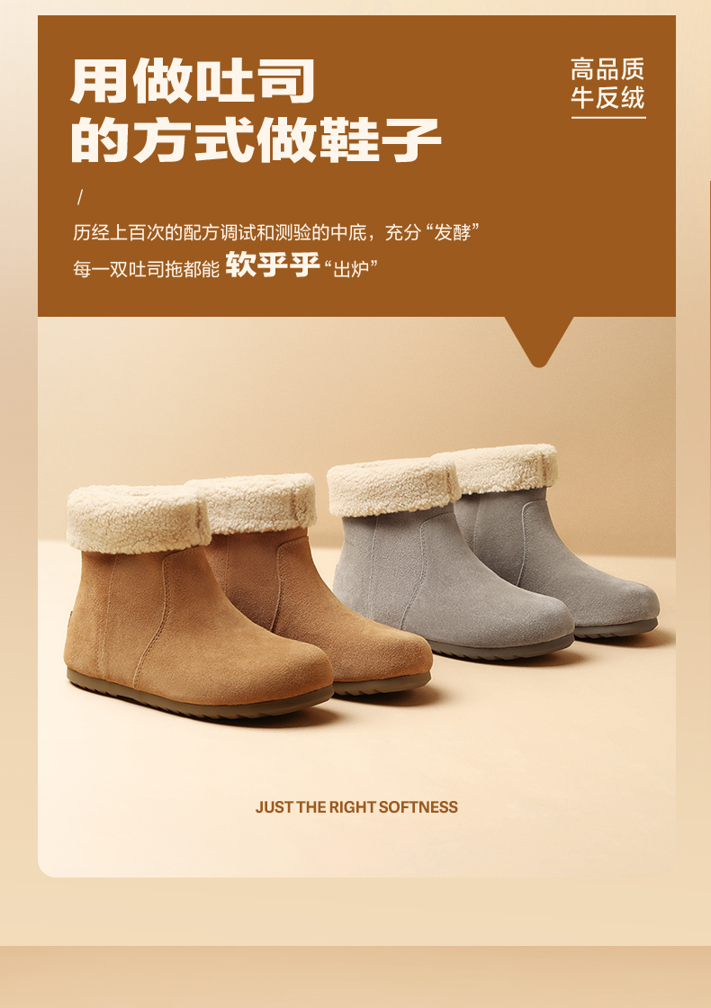 | 鞋垫材质:人造毛绒 | 渠道划分:电商专销 | 前掌高度:无 | 皮质特征:二层皮 | 防水台高度:无 |