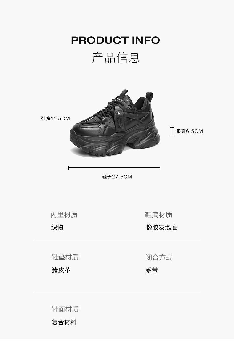 | 风格分类:老爹鞋 | 上市时间:2025年春季 | 生产/经销/进口厂家:百丽电子商务(上海)有限公司 | 鞋类流行款式:老爹鞋 | 鞋头款式:圆头 |