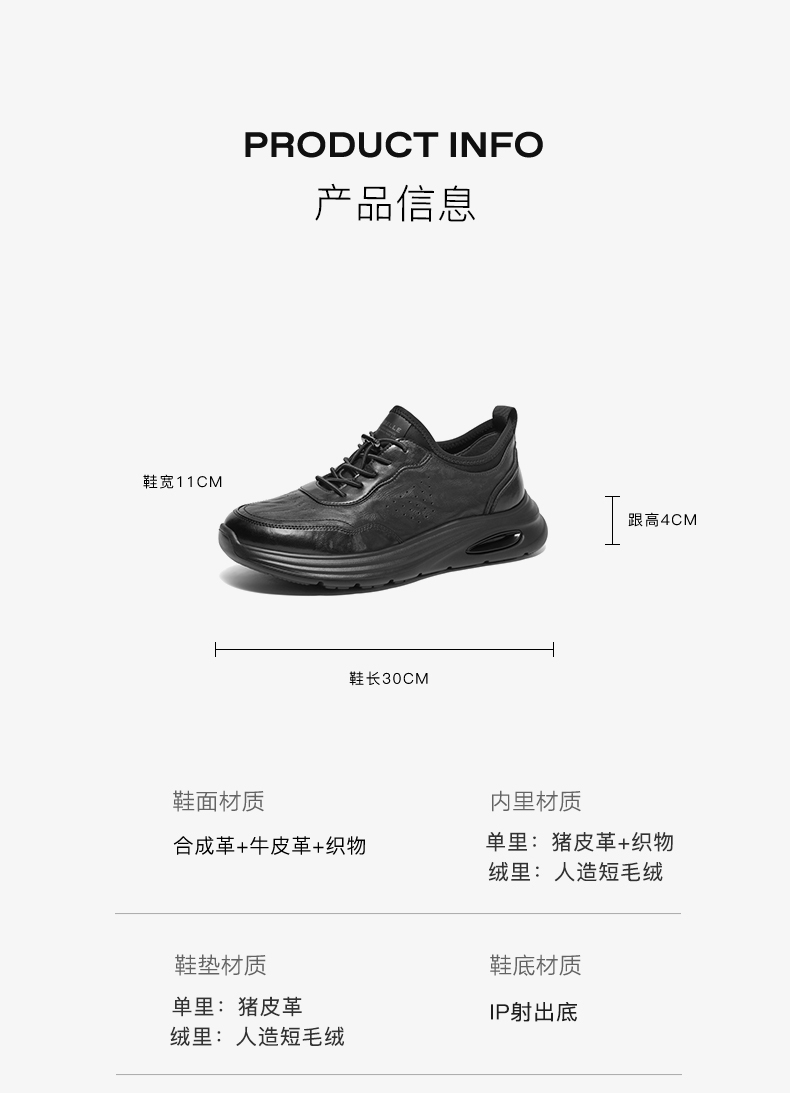 | 性别:男子 | 里料材质:人造短毛绒 | 制鞋工艺:胶贴皮鞋 | 鞋垫材质:人造短毛绒 | 款式季节:春季 |