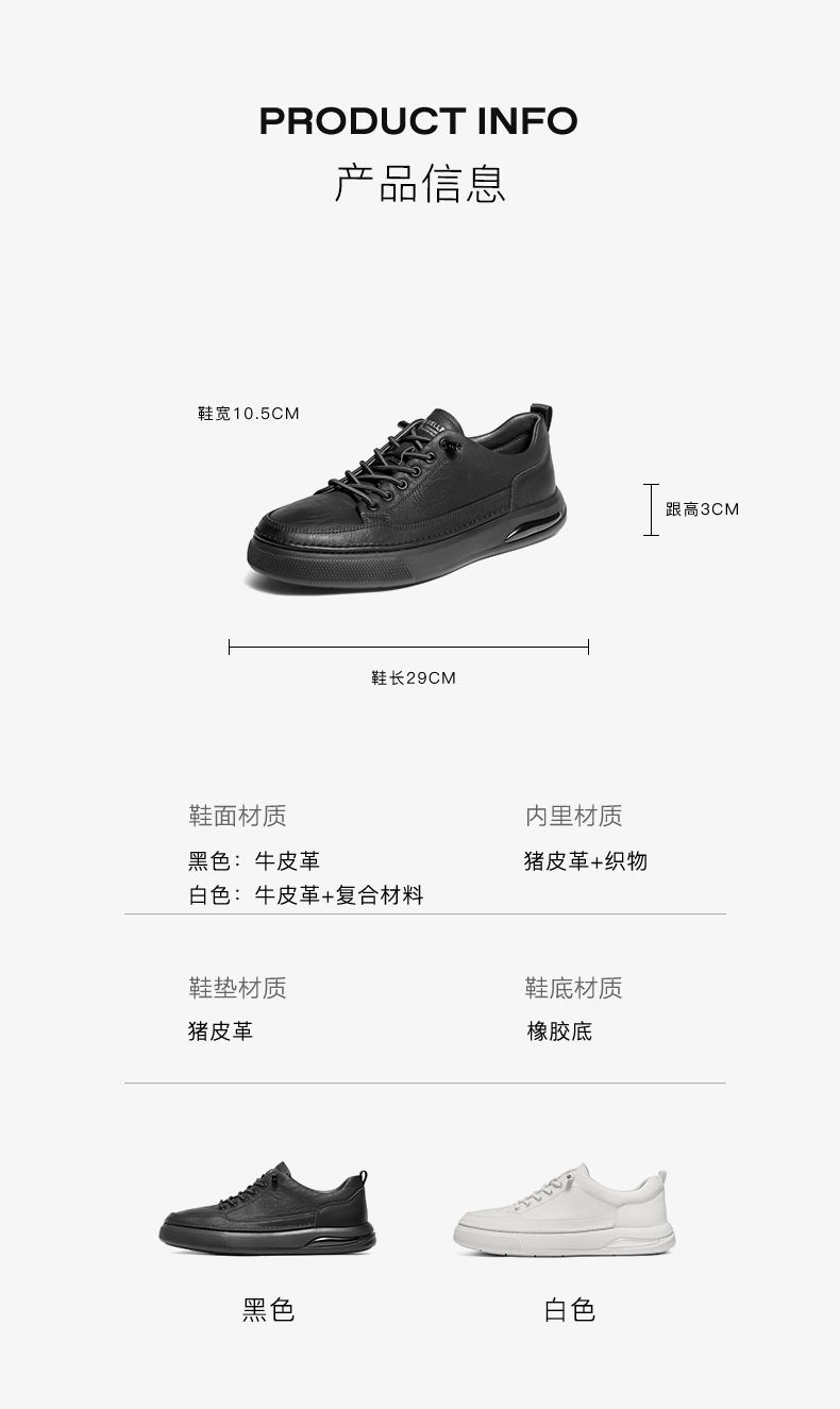 | 风格:休闲 | 色系:白色 | 跟高数值:3CM | 40码鞋宽参考(男):10.5CM | 性别:男子 |