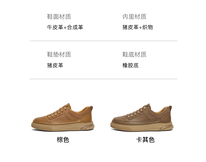 | 风格:休闲 | 色系:卡其 | 跟高数值:3CM | 40码鞋宽参考(男):10.5CM | 性别:男子 |