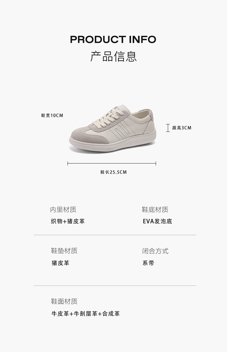 | 风格分类:德训鞋 | 上市时间:2025年春季 | 生产/经销/进口厂家:百丽电子商务(上海)有限公司 | 鞋类流行款式:休闲鞋 | 鞋头款式:圆头 |
