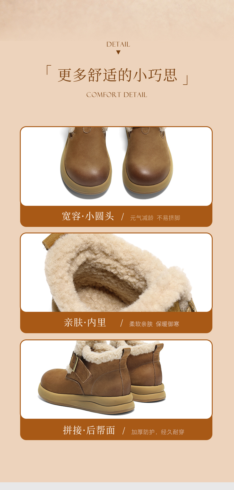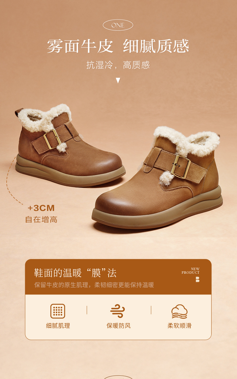 | 鞋底材质:橡胶底 | 靴筒内里材质:人造毛绒 | 内增高:无 | 鞋面材质:牛皮革 | 闭合方式:套筒 |