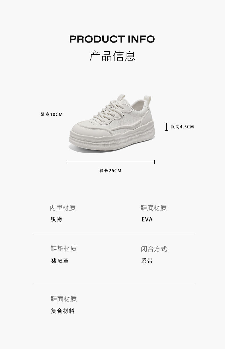 | 鞋跟形状:厚底 | 参考鞋长(女):26CM | 流行元素:纯色 | 参考鞋宽(女):10CM | 风格:时尚休闲 |