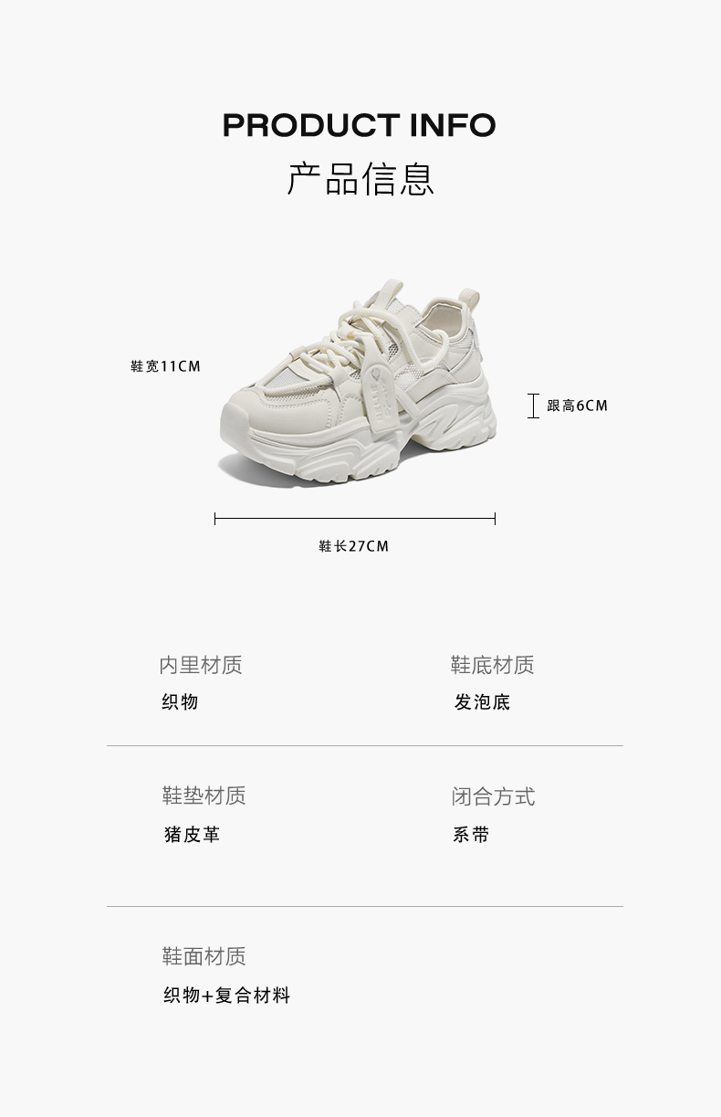 | 配跟:无 | 上市时间:2025年夏季 | 鞋类流行款式:老爹鞋 | 鞋头款式:圆头 | 鞋面图案:纯色 |