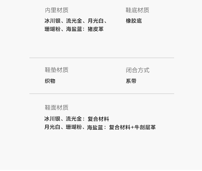 | 适用场合:运动休闲日常休闲 | 闭合方式:系带 | 所在区域:电子商务 | 配跟:无 | 开口深度:深口 |