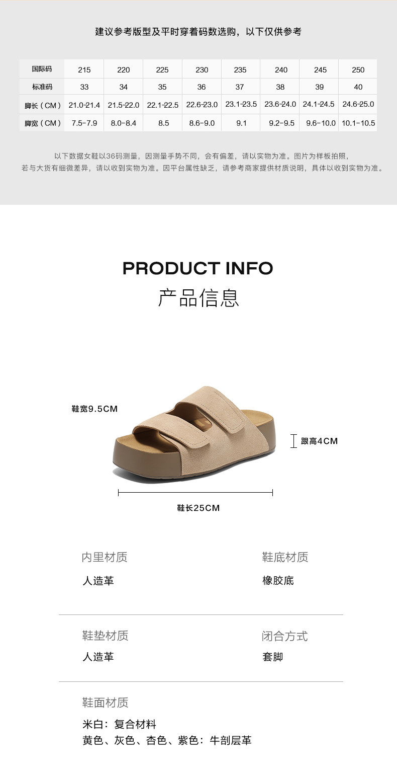 | 上市时间:2025年夏季 | 制鞋工艺:车线胶粘 | 款式季节:夏季 | 鞋垫材质:人造革 | 前掌高度:无 |