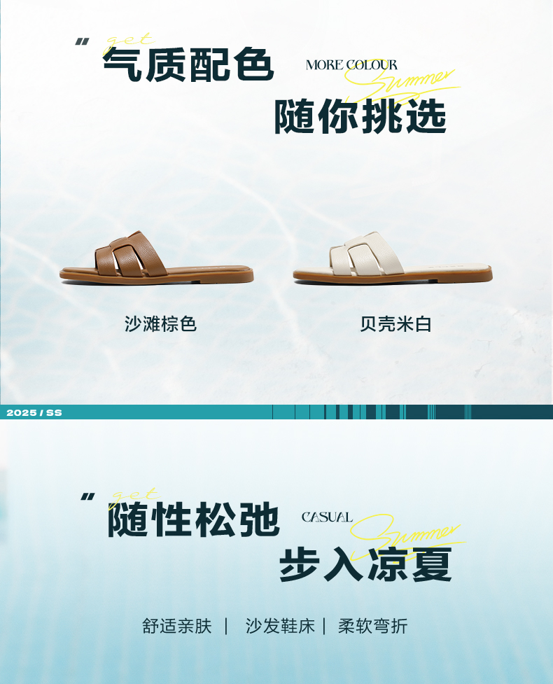 | 所在区域:省仓 | 配跟:无 | 风格分类:一字拖 | 上市时间:2025年夏季 | 生产/经销/进口厂家:百丽电子商务(上海)有限公司 |