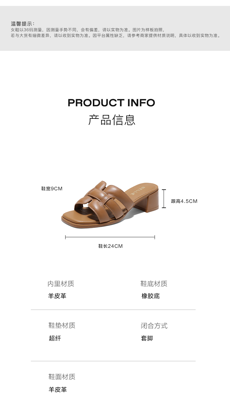 | 皮质特征:羊皮革 | 防水台高度:无 | 鞋类流行款式:拖鞋 |