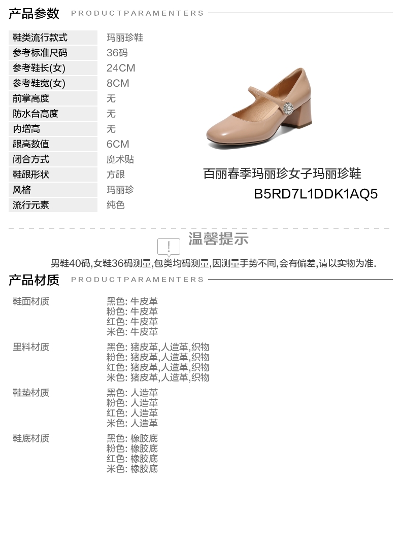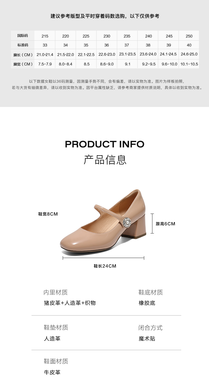 | 参考鞋长(女):24CM | 参考鞋宽(女):8CM | 风格:玛丽珍 | 年份:2025年 | 色系:粉色 |