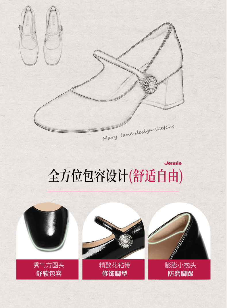 | 上市时间:2025年春季 | 生产/经销/进口厂家:百丽电子商务(上海)有限公司 | 鞋类流行款式:玛丽珍鞋 | 鞋头款式:方头 | 执行标准:舒适上班鞋Q/LR001-2023若与实物发生差异,请以实物标签为准 |