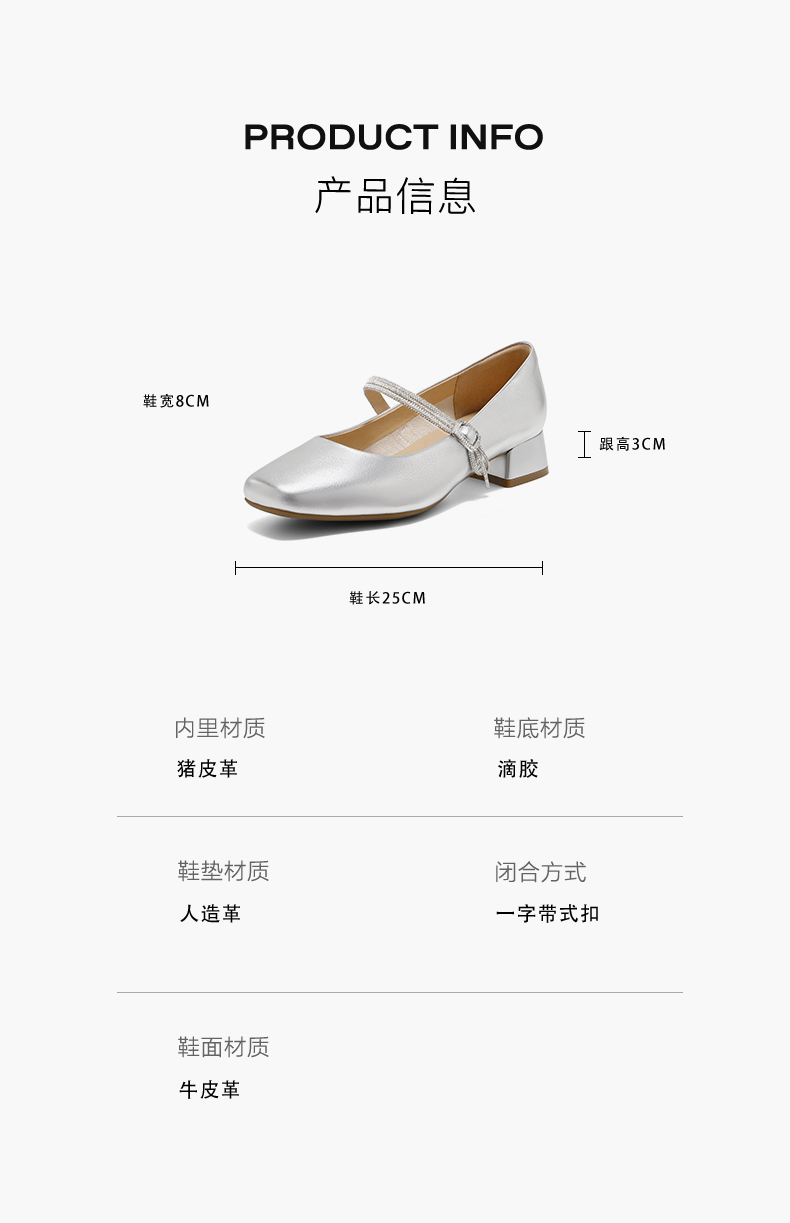 | 参考鞋长(女):25CM | 参考鞋宽(女):8CM | 风格:复古 | 年份:2025年 | 色系:银色 |