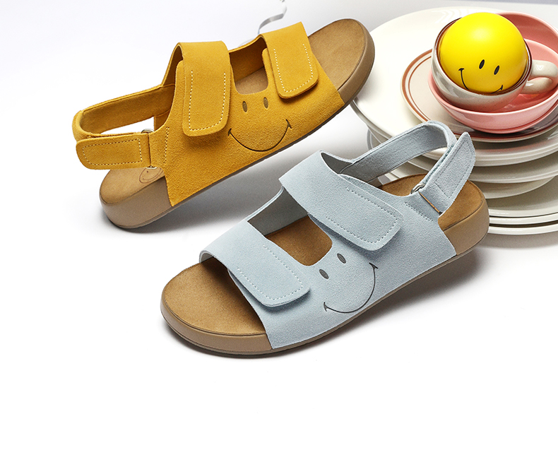 | 鞋头款式:露趾 | 鞋底材质:橡胶底 | 鞋面图案:纯色 | 鞋跟形状:平跟 | 鞋面材质:牛剖层革 |
