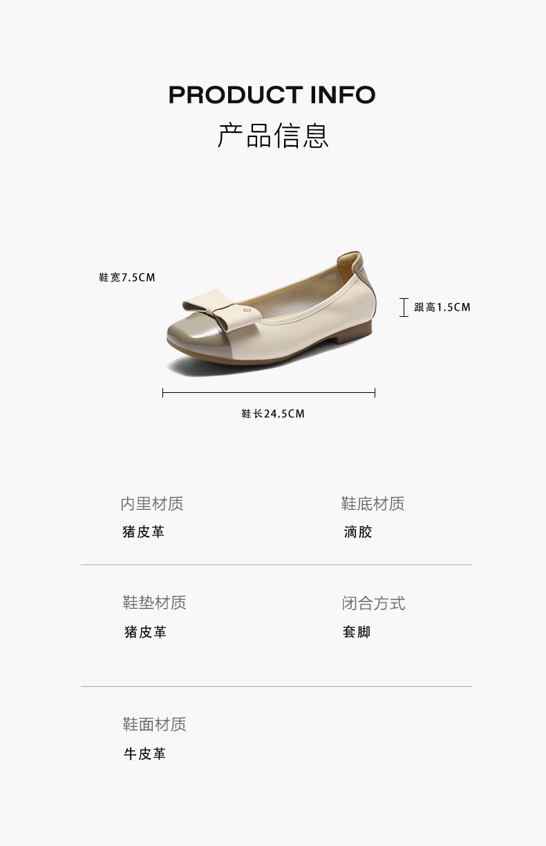| 闭合方式:套脚 | 所在区域:省仓 | 配跟:无 | 开口深度:浅口 | 风格分类:低平跟单鞋 |