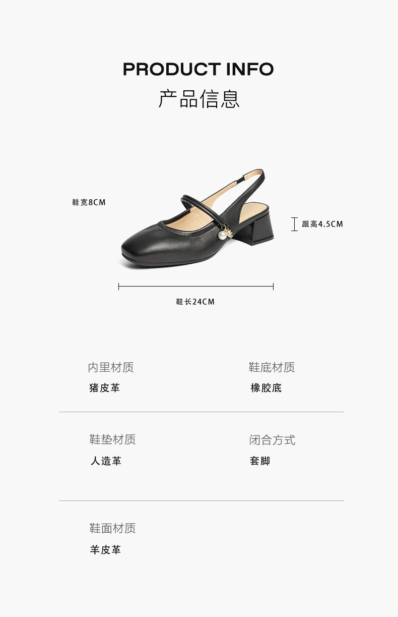 | 鞋头款式:方头 | 鞋底材质:橡胶底 | 鞋面图案:纯色 | 鞋跟形状:粗跟 | 鞋面材质:羊皮革 |