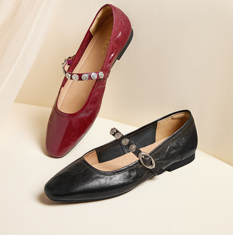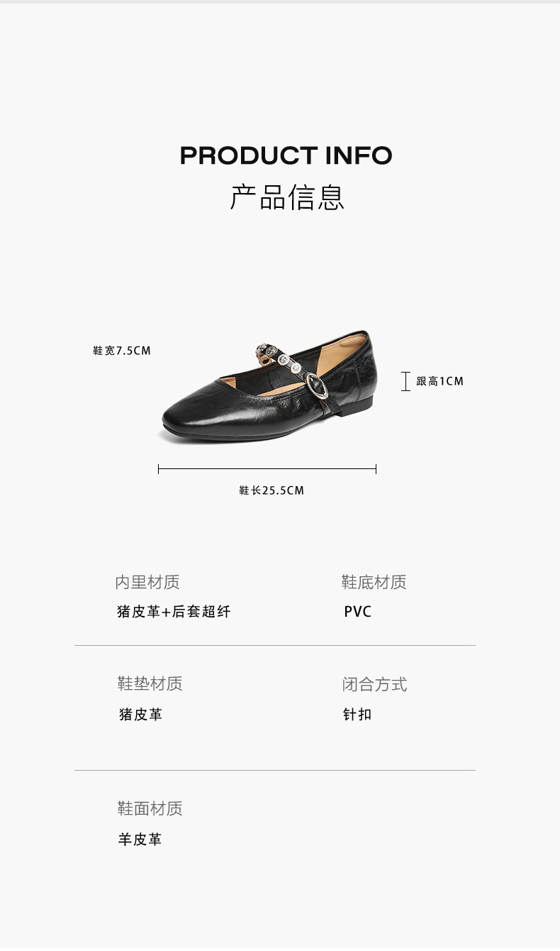 | 上市时间:2025年秋季 | 鞋类流行款式:玛丽珍鞋 | 鞋头款式:尖头 | 鞋面图案:纯色 | 鞋跟形状:平跟 |