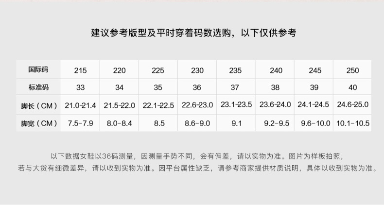 | 流行元素:纯色 | 参考鞋长(女):25CM | 参考鞋宽(女):8CM | 闭合方式:套脚 | 风格:休闲 |