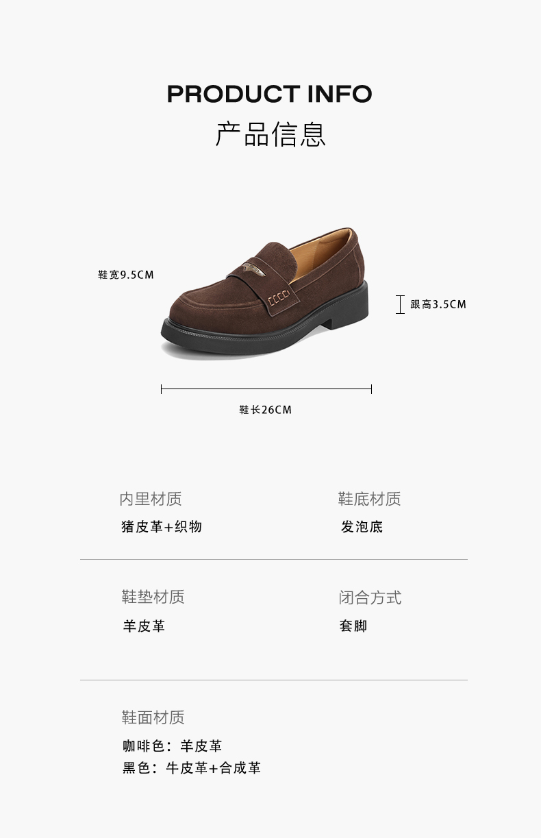 | 配跟:无 | 上市时间:2025年秋季 | 鞋类流行款式:乐福鞋 | 鞋头款式:圆头 | 鞋面图案:纯色 |
