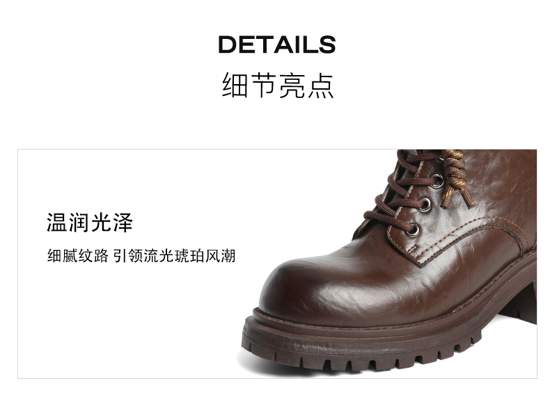 | 帮面材质:复合材料 | 靴筒口围:25.5CM | 上市时间:2025年冬季 | 鞋类流行款式:马丁靴 | 鞋头款式:圆头 |