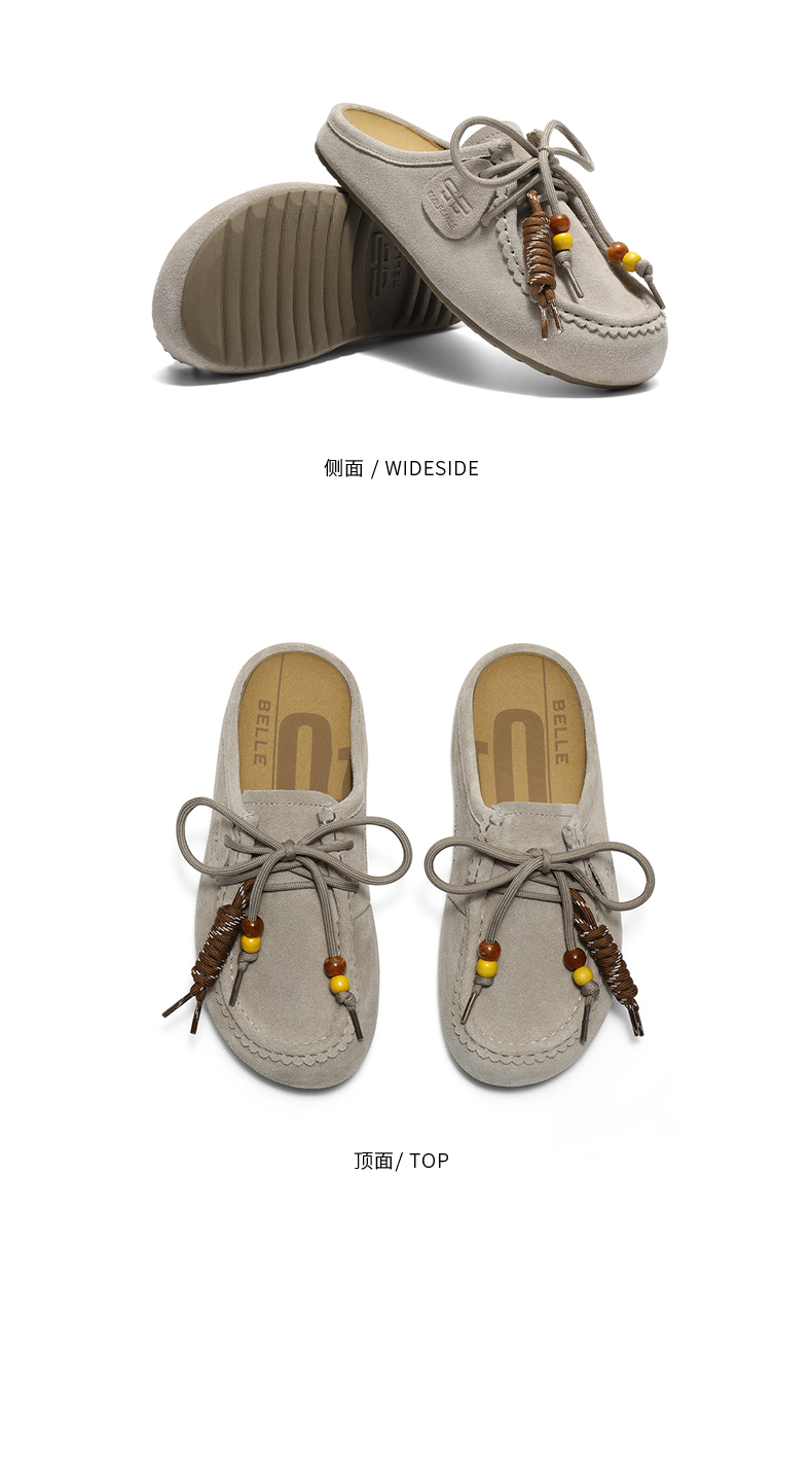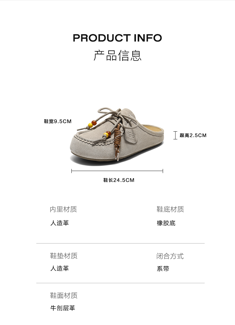 | 鞋头款式:圆头 | 鞋底材质:橡胶底 | 鞋面图案:纯色 | 鞋跟形状:平跟 | 鞋面材质:牛剖层革 |