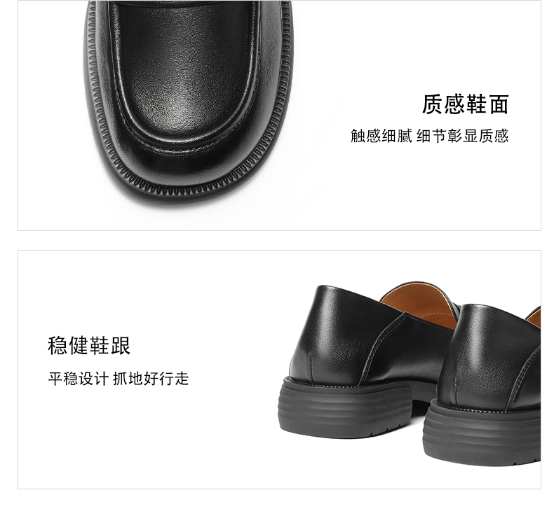 | 配跟:无 | 上市时间:2025年秋季 | 鞋类流行款式:乐福鞋 | 鞋头款式:圆头 | 鞋面图案:纯色 |