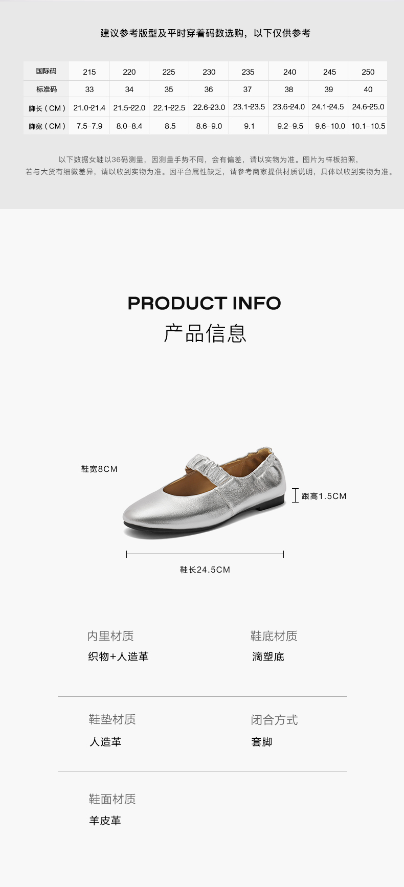 | 上市时间:2025年秋季 | 鞋类流行款式:玛丽珍鞋 | 鞋头款式:圆头 | 鞋面图案:纯色 | 鞋跟形状:平跟 |