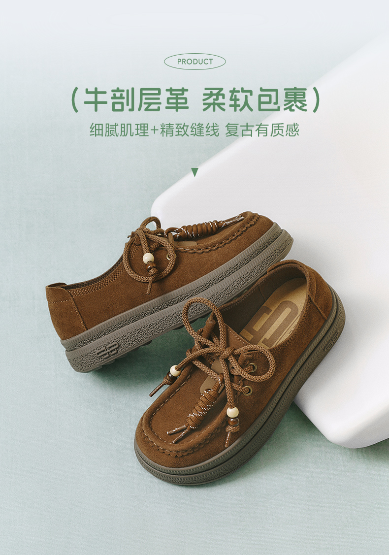 | 鞋帮:低帮 | 鞋底材质:橡胶底 | 内增高:无 | 鞋面材质:牛剖层革 | 闭合方式:系带 |