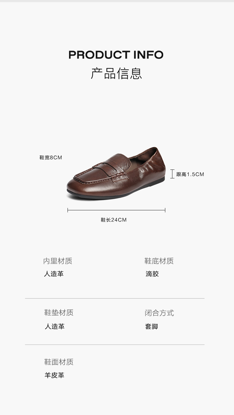 | 配跟:无 | 上市时间:2025年秋季 | 鞋类流行款式:乐福鞋 | 鞋头款式:方头 | 鞋面图案:纯色 |