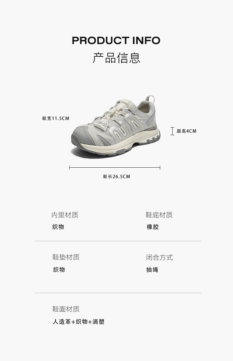 | 鞋面内里材质:织物 | 色系:灰色 | 跟高数值:4CM | 性别:女子 | 里料材质:织物 |